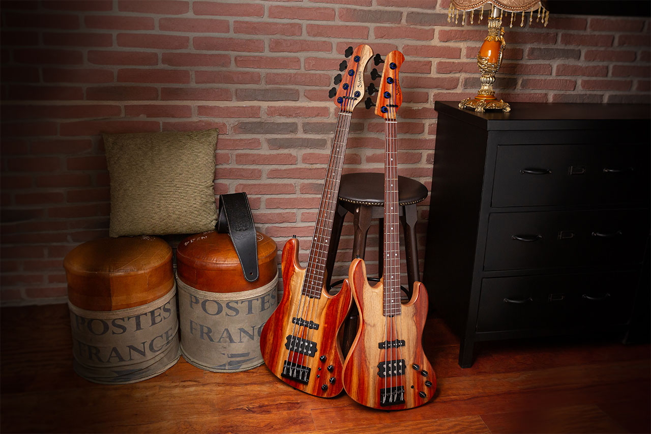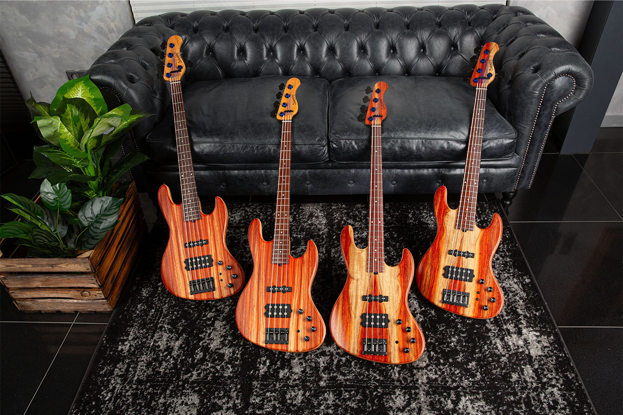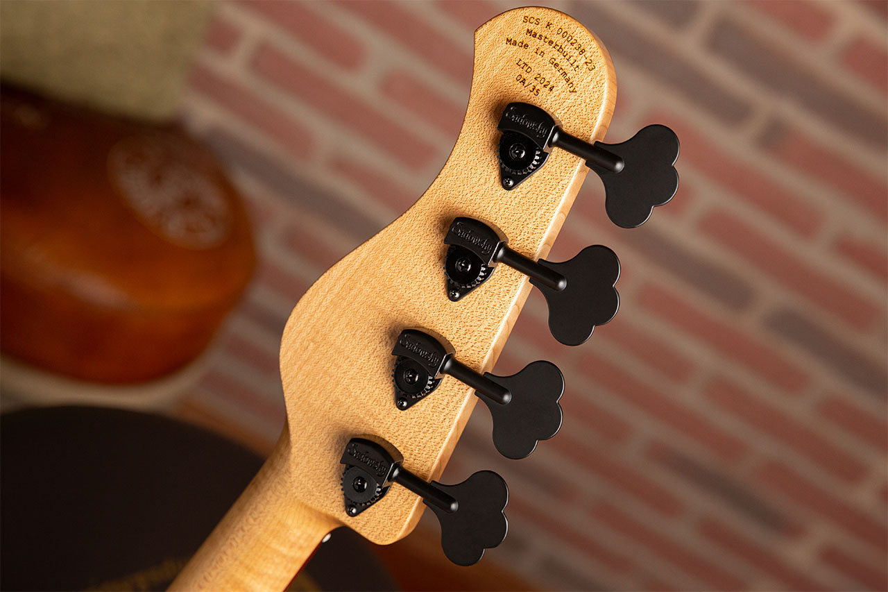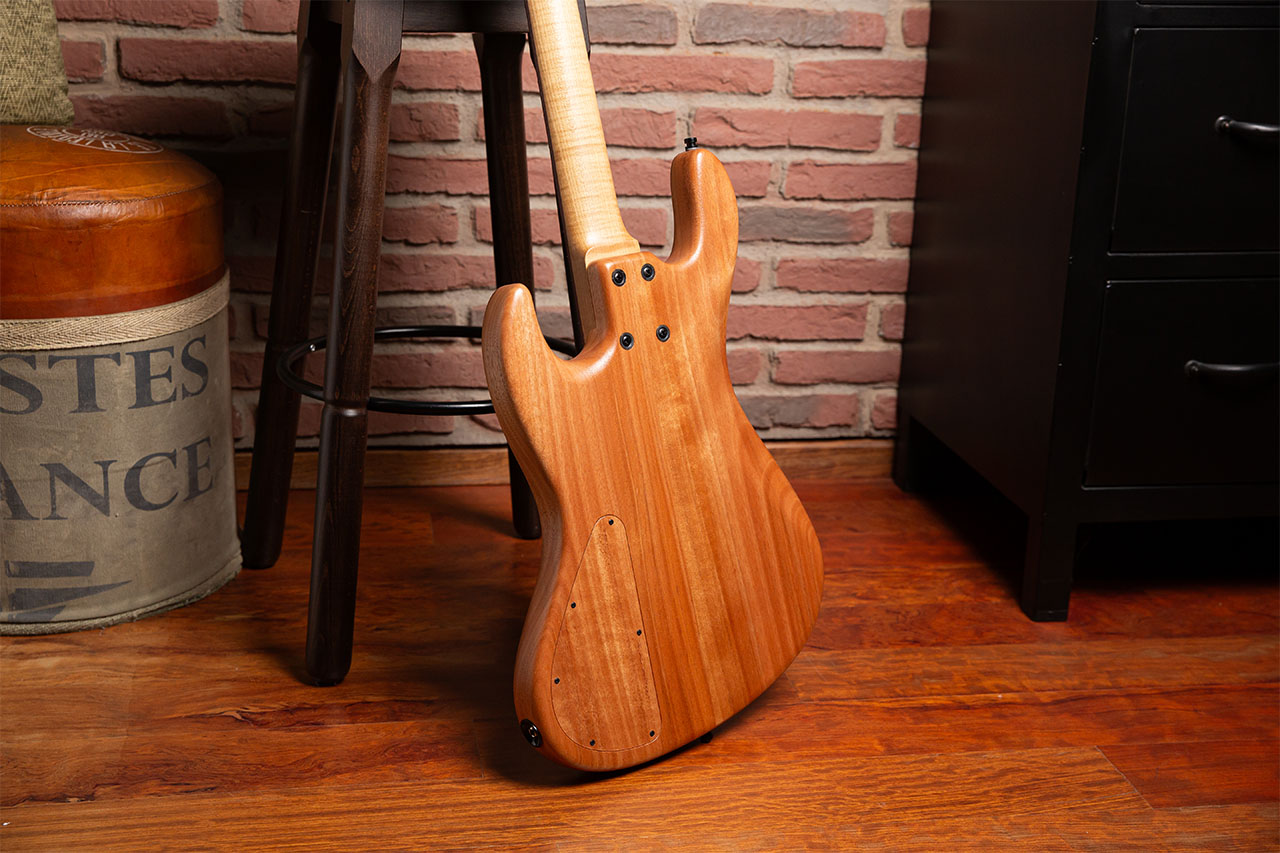 Il MasterBuilt, realizzato in 35 esemplari fra 4 e 5 corde, snellisce ed ammoderna il classico J-Style Shape, ponendo uno scenografico top in Padouk Marmorizzato su un body con camere tonali in Okoume, a cui è saldamente avvitato un manico in Roasted Maple con tastiera in Palissandro del Madagascar.