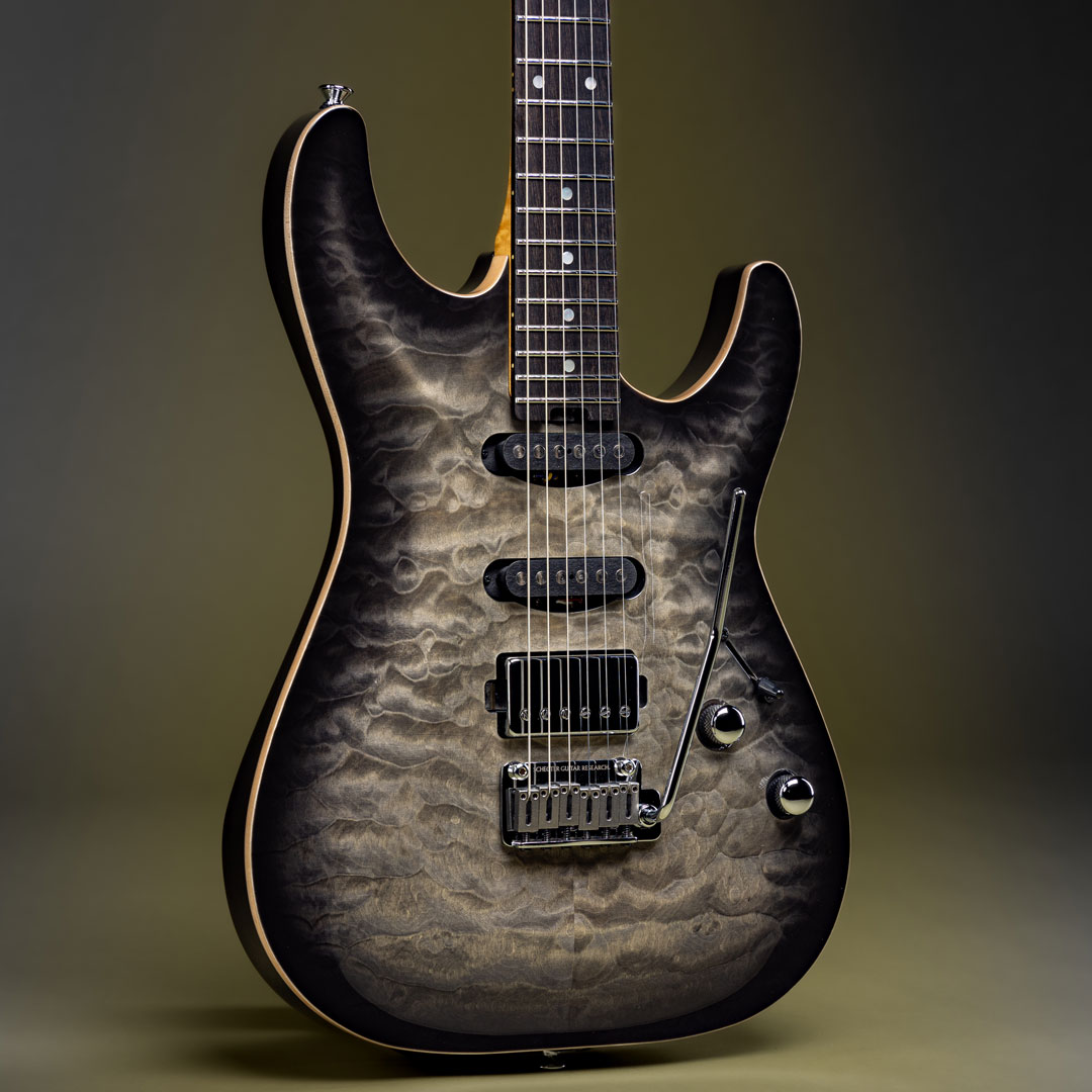 Gli ingredienti di una ricetta perfetta ci sono tutti e pescano a piene mani dai progetti del Custom Shop di Los Angeles: dalle meccaniche autobloccanti al tremolo a due pivot fino ai Pickup Made in USA, dal corpo in Swamp Ash con camere tonali con Top Carved in Acero figurato al manico in acero fiammato fino alla tastiera in ebano con 22 solidi tasti in Acciaio Inox.